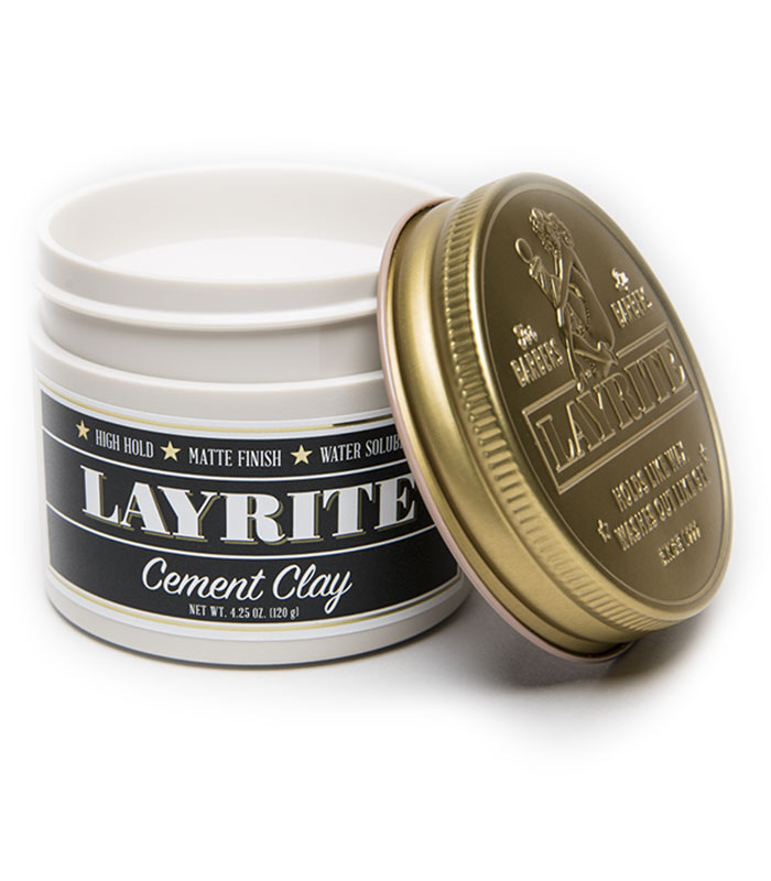 Layrite Cement Clay Pomade. Pomada med stenhårt “hold” och matt lyster. Vattenbaserad och lätt att tvätta ur. Layrite Cement är unik i sitt slag och har trots sin extrema “hold” förmågan att inte göra håret stelt eller nedtyngt. Det går dessutom att forma om under hela dagen. 113g