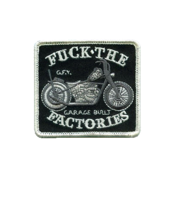 Felon Garage Built Patch – Fuck The Factories. Tygmärke, stryk eller sy fast på ditt favoritplagg.