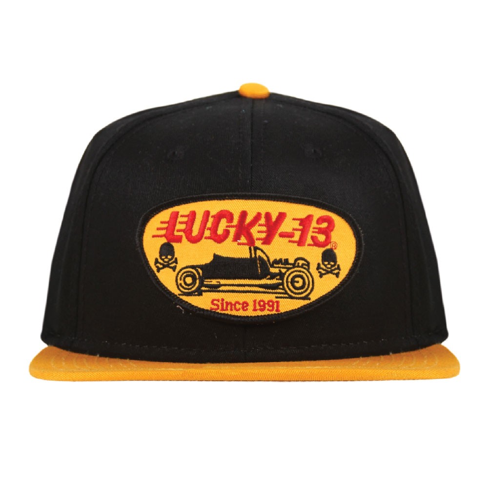 Lucky 13 Snap Back Hat. Keps med gul skärm och Rodder-patch. justerbara storlek.