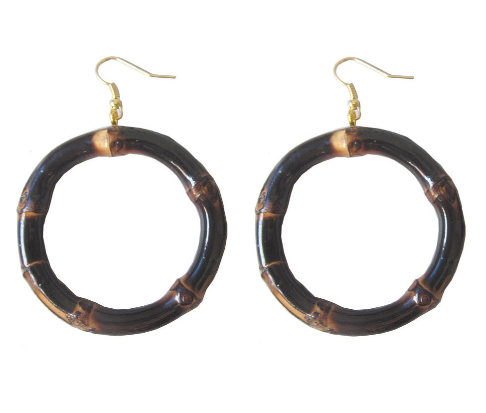 Lady Luck Round Tiki Bamboo Earrings i Burnt Wood.Omkrets ca: 5,5cm, tjocklek ca 7mm
